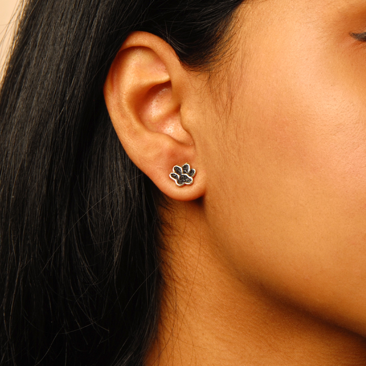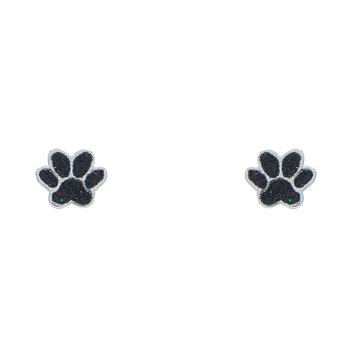 A sweet design for all of the pet lovers out there, our "Cherished Pup" earrings flaunt an adorable puppy print shimmering with black diamond dust. Sterling silver posts. Nickel and lead free jewellery.